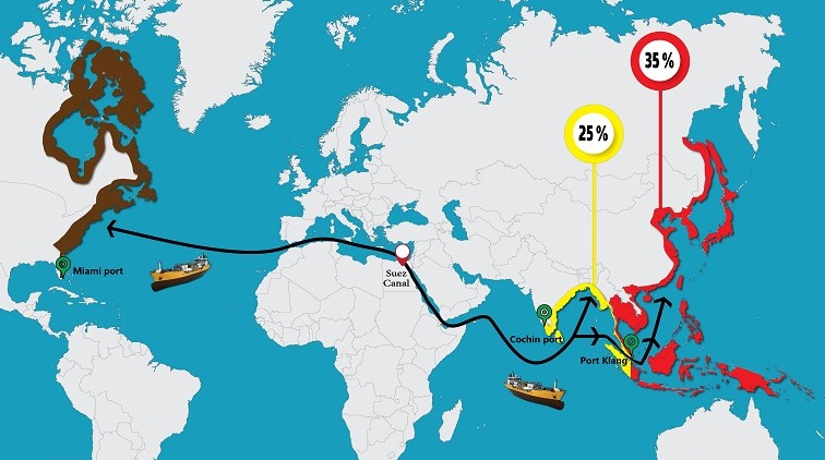 b) Ports located East of “Cochin port”, shall be granted a rebate of 35% of Suez Canal normal tolls.