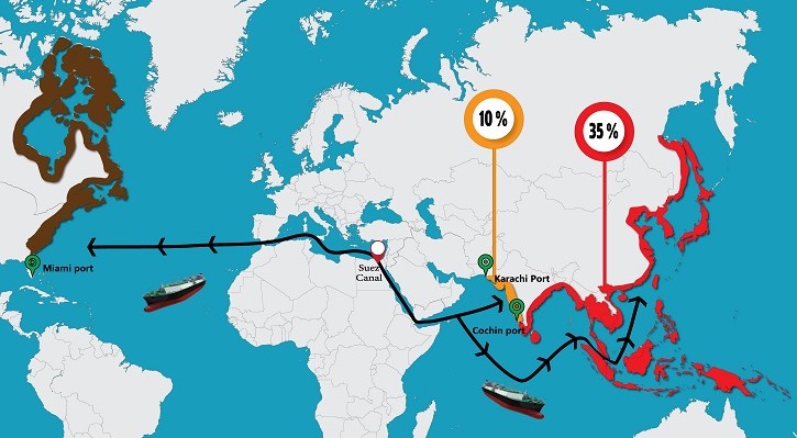 a) Ports at the West of the Indian subcontinent starting from “Karachi, Pakistan” until “Cochin” at the west of India, shall be granted 10% rebate on Suez Canal normal tolls.